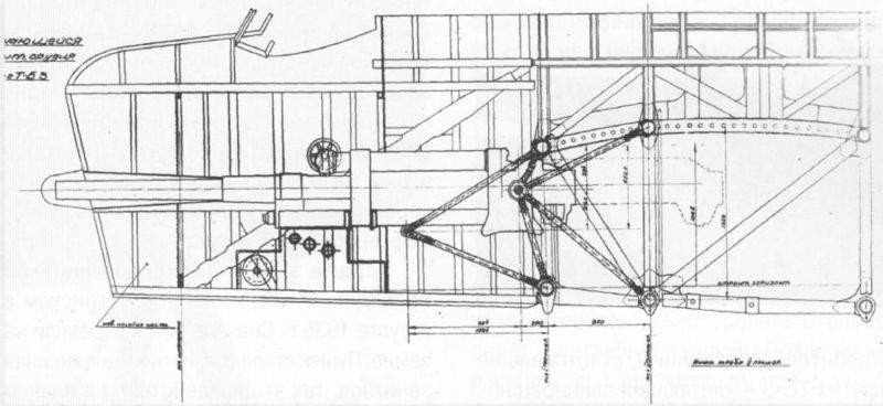 After reviewing several installation variants, it was agreed to install a 76 mm anti-aircraft gun (1931 model in the nose.). The developers were forced to shorten the nose, which forced the elimination of the navigator’s position in the bow. The long tube of the gun was located between the pilots’ stations, protruding by about 250 mm at the bow of the aircraft. The body of the cannon was fixed to the upper and lower partitions of the spars of the center plane, by means of a system of adjustable rods. From the nose and up to the pilots’ position, the barrel was covered with a tube to prevent the entry of gunpowder gases into the cockpit. The reloading of this cannon for firing was done manually. To achieve this, the gun server position was located in the fuselage, with a small seat and some shelves for the projectiles.