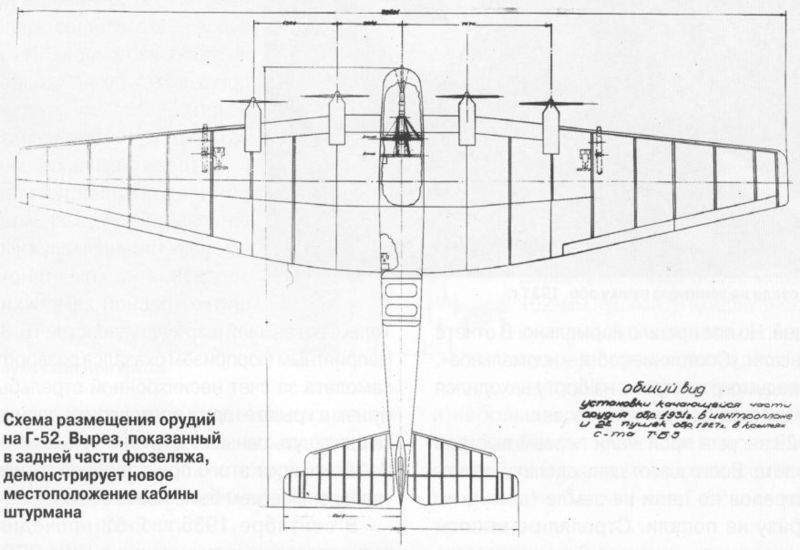 After these results Grojovski began the development of a version with more powerful weapons, again on a TB-3 bomber. This version was called “Letayuchaya Baterieya” or “Flying Drums” and received the designation G-52 (Russian: Гроховский Г-52 “Летающая Батарея”) in the institute’s consecutive year.