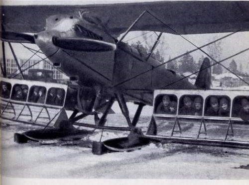 The plane with its ski undercarriage traveled around the runway for about 350 meters and took off. At the controls was Pavel Grojovski. The plane made a low-altitude circle flight and took to the runway. The surprise was tremendous when the cassettes were opened and it was found that instead of bags there were 14 Grojovski collaborators. The “official” explanation was that the Iván Peshkov sacks had not arrived on time for the tests and the collaborators had volunteered to take on the weight. In reality, this fact constitutes a sign of the confidence that the workers of the institute had in their boss.