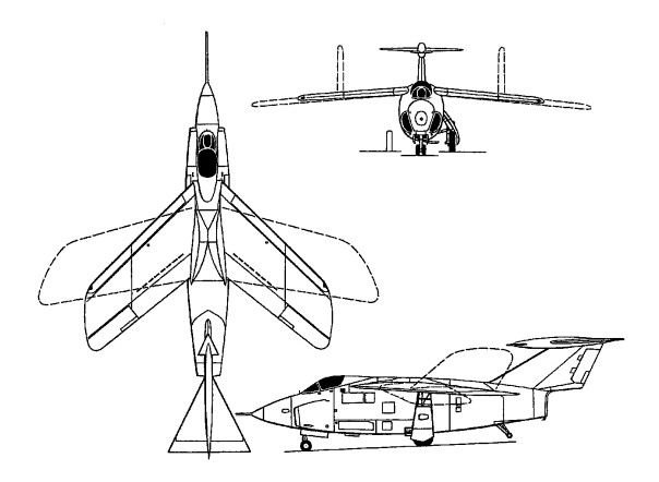 Originally the XF10F had been planned as a development of the Panther with clipped delta flying surfaces. Designed as a transonic single-seat shipboard fighter with an internal armament of four 20-mm cannon and provision for an external bomb load of up to 4,000 lb (1814 kg). The sweep angle of the wings could be varied hydraulically between 13.5 and 42.5 deg, and high-lift devices consisted of full-span slats and an 80 per cent Fowler flap. The concept was then refined to the point at which a tilting variable-incidence wing was in adopted for reduction of the take-off and landing speeds. The navy then added additional responsibilities to the basic fighter-role, and these so increased the structure weight that the company came up with the notion of providing a variable-geometry wing. Further refinement was added after this when it was decided to allow the wing to be swept at any angle between the minimum- and maximum-sweep angles. The provision of such wings increased the type’s weight by 2200 lb (998 kg) but reduced landing speed from 132.5 mph (213 km/h) to 109 mph (175 km/h). The Jaguar was also provided with an advanced control system that included a delta surface forward of the fin to act as a servo for the all-moving tailplane and so improve control response at transonic speed.