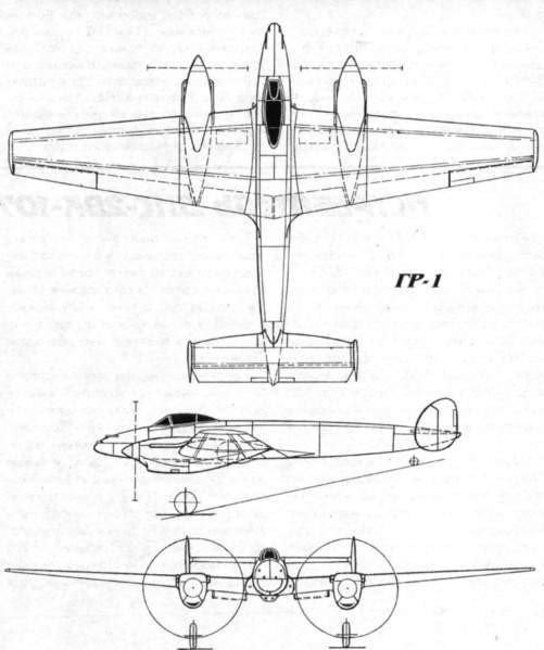 The Gr-1 was designed as a twin-engine monoplane of conventional structure with a twin-empennage tail and was powered by two water-cooled Mikulin AM-37s rated at 1,200 hp. The structure of the Gr-1 was metal. The wings featured spars of square section and the rib of shaped and welded pieces of steel forming a closed contour.