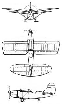 In the initial conception, a power plant that was developed as a project by the OKB-2 of MAI. This model was not yet ready at the time of the competition, so the initial power plant was a 27 hp Obré-Dunné, which was later changed to a 30 hp Bristol Cherub. The plane turned out to be somewhat heavier than the calculations, instead of 230 kg its weight was close to 400 kg. For this reason, after several modifications, a more powerful 45 hp Salmsom engine was installed.