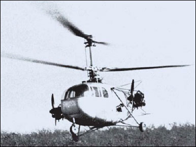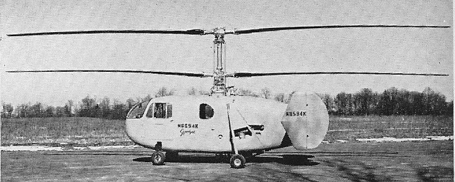 The Gyrodyne Company of America was established by Peter J. Papadakos in 1946. Gyrodyne acquired rights to the five-seat Helicopters Inc. (Bendix) Model J and developed this as the Gyrodyne GCA-2 (N74101). The GCA-2, an all-metal helicopter, had a coaxial twin rotor layout, with a five-seat cabin and a rounded fuselage with twin fins. It was subsequently modified to become the GCA-2A “Helidyne”, with twin 100hp Continental auxiliary engines mounted externally on strutted outriggers to give additional forward speed. It flew in this form on 30 November 1949.