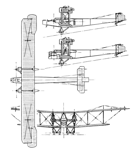 The Royal Naval Air Service Admiralty was thinking in terms of a large twin engined aeroplane able to carry a crew of two and six 112 lb bombs on overwater patrols.