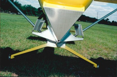 The Lil’ Breezy B’s main gear is solid wood core with fiberglass over it. It is a single piece structure weighing only ten pounds (without wheels and tires). The wood core is composed of three layers of bidirectional grain with ten layers of unidirectional on the lower side to absorb the landing loads.