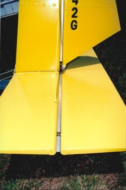 The only components contained inside the triangular boom structure are the push rods for the elevator. A direction reverser is located just aft of the tower structure to translate the stick movements to the correct action at the elevator.