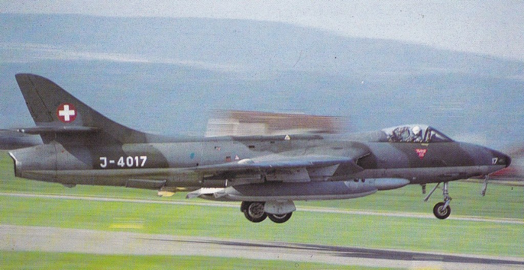 The first Swedish Hunter F.4 was flown from Dunsfold to Stockholm with a refuelling stop at Jever, Germany, on 26 August 1955. The Hunters were designatred J 34 in Swedish Service.