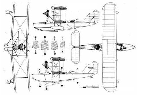 To the lower wing were fastened the additional floats, which ensured stability on the water. With the installation of skis, the floats were removed and in their place were protective arcs.