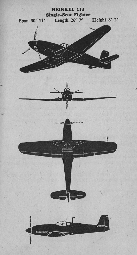The fourth prototype, He 113, with a new, smaller, elliptical wing, was evaluated operationally with the Legion Condor in Spain in 1936, and was shown at the July 1937 Zurich International Flying Meeting.