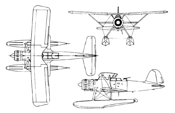Begun by Heinkel under Luftwaffe contract at the beginning of 1936, the first of five variously ¬powered prototypes flew in the late spring of that year. It was a two seat, all metal two float seaplane of sesquiplane configuration, fitted with a 960 hp DB 600A engine driving a three blade wooden propeller.