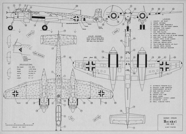 By late 1941 they were in desperate need of a good night fighter for intercepting Allied bombing attacks. In January 1942 the design was revised for adaptation as a night fighter but then was delayed by RAF bombing which destroyed all of the engineering drawings in the Heinkel factory at Rostock-Marienehe.
