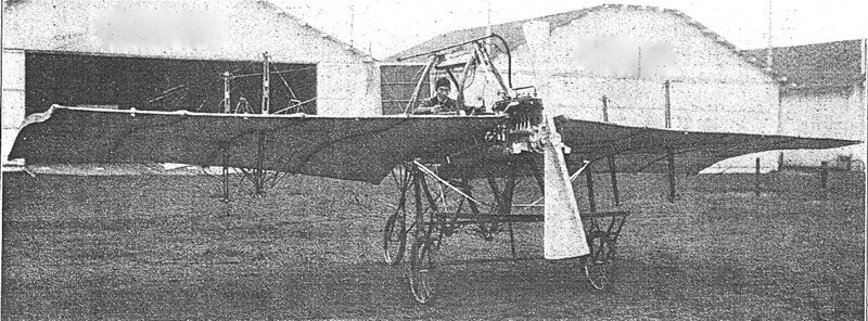 An Argus-engined tractor monoplane, tested at Johannisthal, Germany, in late 1909. Characteristic features: shaped wing profile, big radiator on top of the rear fuselage, double top-and-bottom cabanes encircling the cockpit and anhedral tail surfaces.