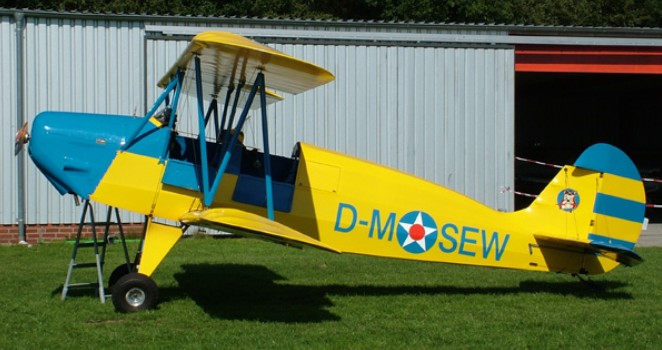 The Vagabund is a 3-axis two-seat ultralight biplane, in classic timber construction. The design of the Vagabund goes back to 1989. The open cockpit biplane is constructed using the usual materials and working procedures for wooden aircraft. The fuselage is conserved with epoxy resin and covered with polyester fabric. A high-quality lacquer finish gives it a maximum weather protection. The open cockpit biplane has a welded tubular steel chassis with one-guidable roll spur. The wooden-propeller is driven by a 80 hp, lightweight four-stroke, horizontally-opposed aircooled Jabiru 2200 engine. As power plant also the 50 hp Nissan Micra 1200 or the 80 hp Rotax 912 UL version engine can be used. The choice of the engine has its influence on the performance of the aircraft: with the Micra 1200 the cruise speed is 125km/h, with the Rotax 912 125 km/h.
