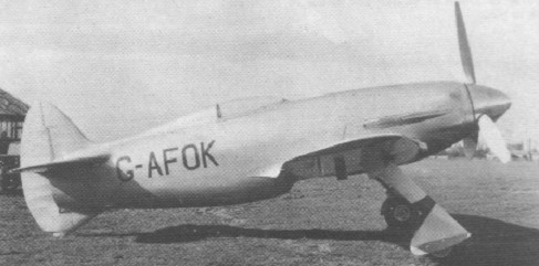 The Heston Type 5 Racer G-AFOK, designed by A.E.Hagg and G.Cornwell, was built at Heston during 1939-40, but crashed there on its maiden flight on June 12, 1940.