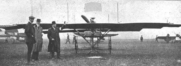 The “rekonstruierte Hipssichflieger” – sometimes identified as the Hipssich Drachenflieger II, a development of the I – photographed at the flying field at Wiener Neustadt around the beginning of October 1910. At right, wearing a bowler, is Karl Hipssich. Hippsich was a German inventor living in Vienna with an interest in aviation who invented and patented an automatically stable Flying machine, or “Drachenflieger” rather.