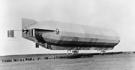 Construction was delayed by a number of circumstances. Difficulties were encountered with the fabrication of the duralumin girders for the transverse frames, and there were many changes to the design, including strengthening the hull so that it could be handled safely by inexperienced crews, and replacing the original drive arrangement of paired propellers mounted on the sides of the hull with swivelling propellers mounted on the gondolas (as used on contemporary British Army dirigibles).