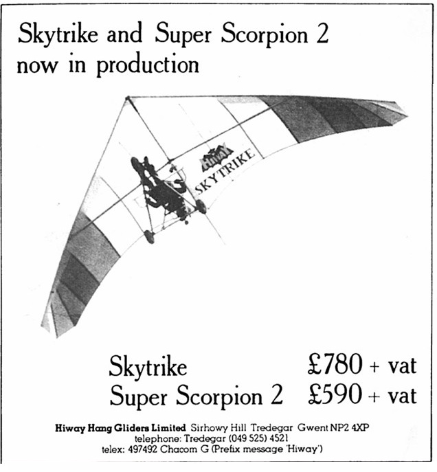 Paddy Monro was one of the many test pilots for Hiway and considered the Super Scorpion was an improvement on the Scorpion. The “C “was the best version. Best glider and best seller in its day.
