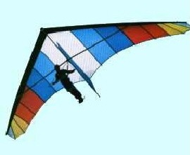 It is characterised by a unique aft sail extension which ought to mean improved longitudinal stability. It also has what the manufacturer calls a ‘keel sail equaliser’ that allows for the sail to adjust under the changing air pressure distribution in a turn. A typical trapeze bar / harness arrangement is used. Its wing loading is about the same as a standard Rogallo, thus, coupled with the greater efficiency of the high aspect ratio wing, it has a very low stall speed. This may limit its speed range. At the stall, one wing tip will tend to drop. Pitch and roll response are reported adequate just above stall.