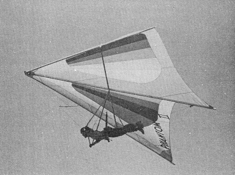 Hiway decided to return to simplicity for a new range of gliders, with no wing wires. Hiway designed the airframe to fles in a particular way under flight loads, and then sew the sail to fit the shape exactly. The first of the range were 1) Super Scorpion, a cross-country hang glider. 2) Spectrum, intermediate glider. 3) Gemini, purpose designed two-place glider. 4) Harrier, primary and training glider. The Scorpion was a 1977 hang glider from Hiway Hang Gliders.