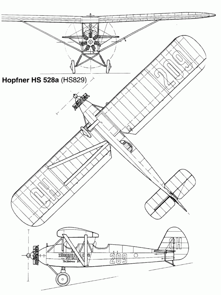Following were two more with the more powerful NZ85, HS.528a (HS.5/28a), one rebuilt HS.528, for the Swiss aeroclub use. The first of the aircraft (the reconstructed A-50, the on-board number CH-231) was delivered to the customer in November 1928, and the second (CH-209) – in March next year. The latter was used until 1934 in the Zurich Aviation Club.