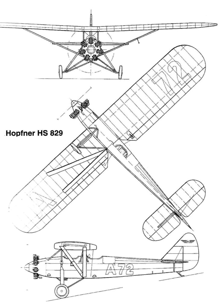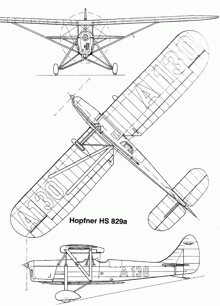 An improved version of the two-seater training / sports Hopfner HS.528 received the designation HS.829 and was equipped with a Walter motor of 85 or 110 liters capacity.