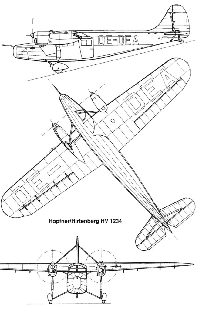 The Hopfner HV.12 / 34 (HV.1234) light transport aircraft was designed by Lampich by special order of Anton von Habsburg, Prince Lorraine. The aircraft became the first twin-engine transport aircraft of Flugzeugbau Hopfner GmbH.