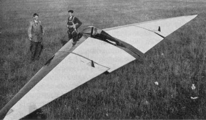 It had a span of 40 ft. and a wing loading of 2 lb/sq.ft. The control system comprised a control flap giving elevator control and normal ailerons at the wing tip. Directional control was by leading edge drag rudder at the wing tip.