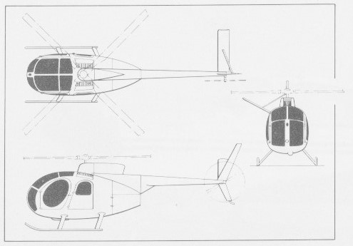First flown in February 1963, the Hughes Model 369 prototype won the US Army’s Light Observation Helicopter contest against Bell and Hiller helicopters, and was ordered into large-scale production. The OH-6A Cayuse (the initial production model) entered service in September 1966. Production was curtailed at 1,434 units out of a planned 4,000, however, when costs rose and production rate fell. The Cayuse proved well suited to the Vietnam War, where it flew armed missions with a multi-barrel machine gun or 40-mm grenade launcher. Some surviving helicopters have been upgraded to OH-6D standard with more advanced electronics and heavier armament. Owing to military orders, it didn’t become available to commercial operators until 1967. It was offered in three versions, the 369HM military export model, 369HE commercial executive model ad 369HS standard model, the difference between the three being in the interior equipment fit. The 369HE was dropped in 1970 after only 25 had been built. The first civilian 500s, powered by the 317 shp Allison 250 C18A derated to 278 shp for five minutes operation and 243 shp for continuous use, were delivered in late 1966, but only a few were available.