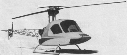 A two place, light utility helicopter, featuring a composite cabin, welded tubular fuselage and multiple V belt main rotor drive.