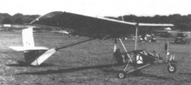 Single seat single engined high wing monoplane with conventional three axis control. Wing has unswept leading edge, swept forward trailing edge and tapering chord cruciform tail. Pitch control by elevator on tail; yaw control by fully flying rudder with additional fin; roll control by half span ailerons; control inputs through stick for pitch/roll and pedals for yaw. Wing braced from above by kingpost and cables, from below by cables; wing profile 80% double surface. Undercarriage has three wheels in tricycle formation with additional tailwheel; no suspension on nosewheel and steel spring suspension on main wheels. Push right go right nosewheel steering connected to yaw control. No brakes. Aluminium tube framework, with optional pod. Engine mounted below wing driving pusher propeller. Aluminium tubing to British HT3OTF specification. Polyester sailcloth.