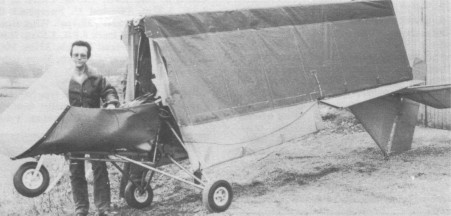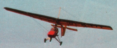 Single seat single engined high wing monoplane with conventional three axis control. Wing has unswept leading edge, swept forward trailing edge and tapering chord cruciform tail. Pitch control by elevator on tail; yaw control by fully flying rudder with additional fin; roll control by half span ailerons; control inputs through stick for pitch/roll and pedals for yaw. Wing braced from above by kingpost and cables, from below by cables; wing profile, modified 23012; 100% double surface. Undercarriage has three wheels in tricycle formation with additional tailwheel; no suspension on nosewheel and steel spring suspension on main wheels. Push right go right nosewheel steering connected to yaw control. No brakes. Aluminium tube framework, with optional pod. Engine mounted below wing driving pusher propeller. Aluminium tubing to British HT3OTF specification. Polyester sailcloth.