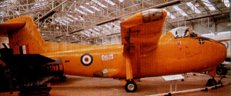 The Hunting H.126 was a one-off single-seat research aircraft with fixed tricycle landing gear designed to test the effects of directing the jet exhaust air across the flaps and control surfaces to increase lift, or as they were known in Britain, “jet flaps”. The exhaust efflux of a turbojet engine is ducted to the trailing edge of an aircraft’s wings and ejected through a narrow slit along the trailing edge. As well as being used to provide propulsion, the efflux can be deflected downward to form a “jet-flap” of high velocity gas which makes possible the achievement of lift coefficients of 10 or more. The shoulder-level wing featured a set of struts, not for support but in order to provide piping for the compressed air used in the blown flaps. A maxi¬mum of 60% of the jet exhaust can be directed to the wings and a further 10% to reaction jets in the tail and wingtips.