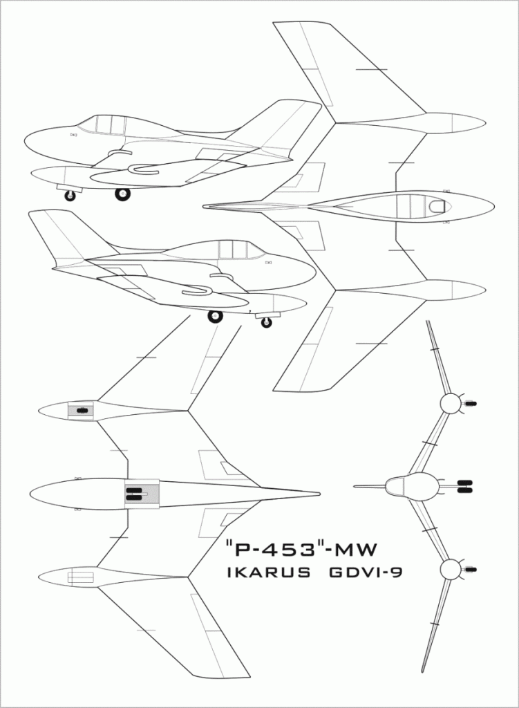 The Ikarus 453 (P-453-MW) was an aircraft designed in 1952. It featured reverse gull wings to accommodate two Turbomeca Marbore II turbojet engines in the nacelles on the wing. In 1952 the first flight was conducted without engines fitted (in glide mode) but it crashed and the project was cancelled (the pilot survived the incident).