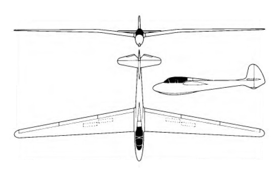The Kosava-2 was a redesigned version intended for training from basic to advanced levels, including blind flying training, aerobatics and high altitude soaring. It features a new more streamlined fuselage with the pilots in tandem under a flush-fitting cockpit canopy divided by a centre frame; the two canopy sections are jettisonable, and there is provision for an oxygen system for the pilots. A retractable monowheel and tail bumper replaces the skid of the earlier Kosava, and the fin and rudder are swept back and the mid-set tailplane’s span increased, whereas the earlier Kosava’s tail unit, fuselage and cockpit resembled those of the DPS Kranich it was designed to replace. The Kosava-2’s wing is very similar in plan to the earlier Kosava’s, but has dihedral from the roots and is of 18m span (59 ft 0.75 in), with one piece ailerons, air brakes in the upper surfaces and no flaps.