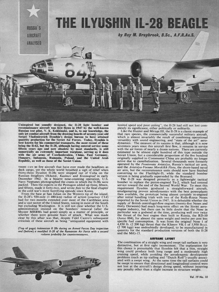Ilyushin Il-28 Article 23/01/202506/09/2025Terry Back to Ilyushin Il-28 1957 Share this: Click to share on X (Opens in new window) X Click to share on Facebook (Opens in new window) Facebook Like Loading... Related