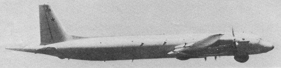 Il-38 has been a standard SovNavAir open-ocean maritime surveillance aircraft since entering service in 1970, with some 60 in inventory mid-1987. NATO code name ‘May’. One of two current service military derivatives of commercial Il-18 (other being Il-20 Coot-A ELINT aircraft ), Il-38 has bays fore and aft of wing for sonobuoys and various attack weapons. Power is provided by four 4,250 ehp AI-20M turboprops. About 60 were believed to be in use by the Soviet naval air force. Three ex-SovNavAir operated by Indian Navy.