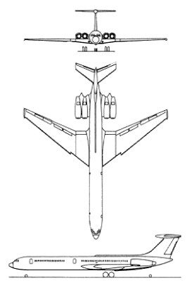 First flown in January 1963, the Il-62 was officially announced by the Soviet Prime Minister, Nikita Kruschev, in September 1962. The basic IL-62 was announced to carry up to 186 passengers, but other seating arrangements provide more leg room with 114 or 168 passengers.