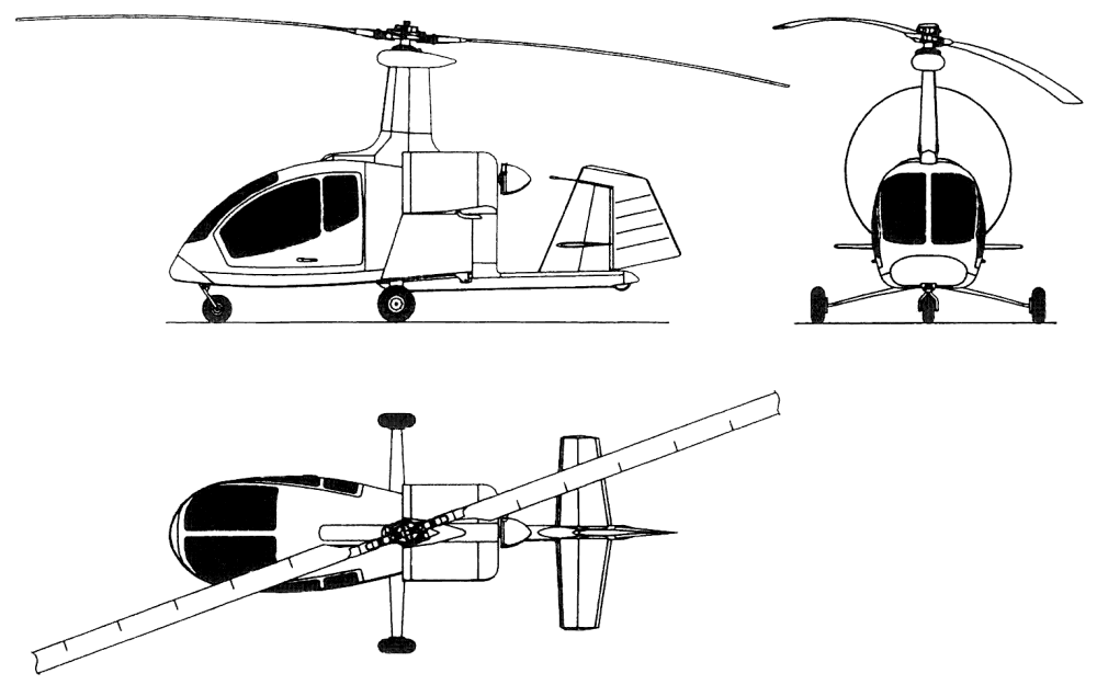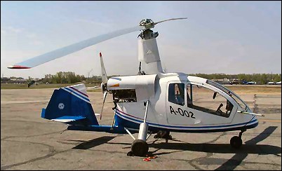 The A-003 conforms to FAR Pt 27 and Russian AP-27. A streamlined, cabin autogyro, with pusher propeller, single, sweptback fin with large rudder, and broad track landing gear. It is equipped for engine-driven pre-rotation of rotor.