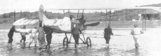 After the destruction of Itoh’s hangar at Inage Beach by a tidal wave at the end of September 1917 his works and flying school moved to Tsudanuma Beach, otherwise known as Itoh Airfield. The move led a significant increase in student numbers and a new, two seat trainer was needed; until then they had relied on single-seaters. The solution was provided not by Itoh or his employees but by a regular visitor to the airfield, Tomotari Inagaki. He designed a simple and stable two seat trainer around the water-cooled 80 hp (60 kW) Hall-Scott V-8 engine taken from the Emi 3. It became known as the Itoh Emi 9.