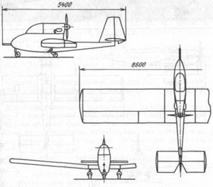 The tests showed that with a flight weight of 352 kg the aircraft reached 148 km / h and reached a ceiling of 2300 m.