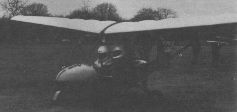 Side by side two seat single engined high-wing monoplane with conventional three axis control. Wing has swept back leading edge, swept forward trailing edge and tapering chord; conventional tail. Pitch control by fully flying tail; yaw control by fin mounted rudder; roll control by spoilerons; control inputs through stick for pitch/roll and pedals for yaw. Wing braced from below by struts; Wing profile 100% double surface. Undercar¬riage has three wheels in tricycle formation; glass fibre/carbon fibre suspension on all wheels. Push right go right nosewheel steering connected to yaw control. Glass fibre fuselage, partially enclosed. Engine mounted below wing driving pusher propeller. Aircraft quality materials are used for all structural and control fittings. The wing and tail are of composite construction.
