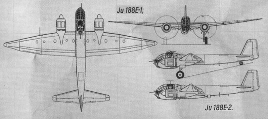 The Ju 188 was a development of the Ju 88. It had a redesigned nose, new wings of greater span with pointed tips, and heavier armament.