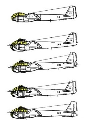 Projected versions of the Ju 188 included the C bomber (with a remotely controlled tail turret); G (development of the G); H reconnaissance aircraft (developed from the G); R night fighter; and the T photographic reconnaissance aircraft with a pressure cabin.