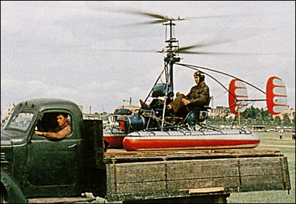 The first Ka-10 was flown by D.K.Yefremov in September 1949. It was followed by three more prototypes and eight Ka-10M pre-production models; the latter were distinguished by the fact that they had a different rotor assembly and an endplate fin tail unit instead of the single fin of the Ka-10.