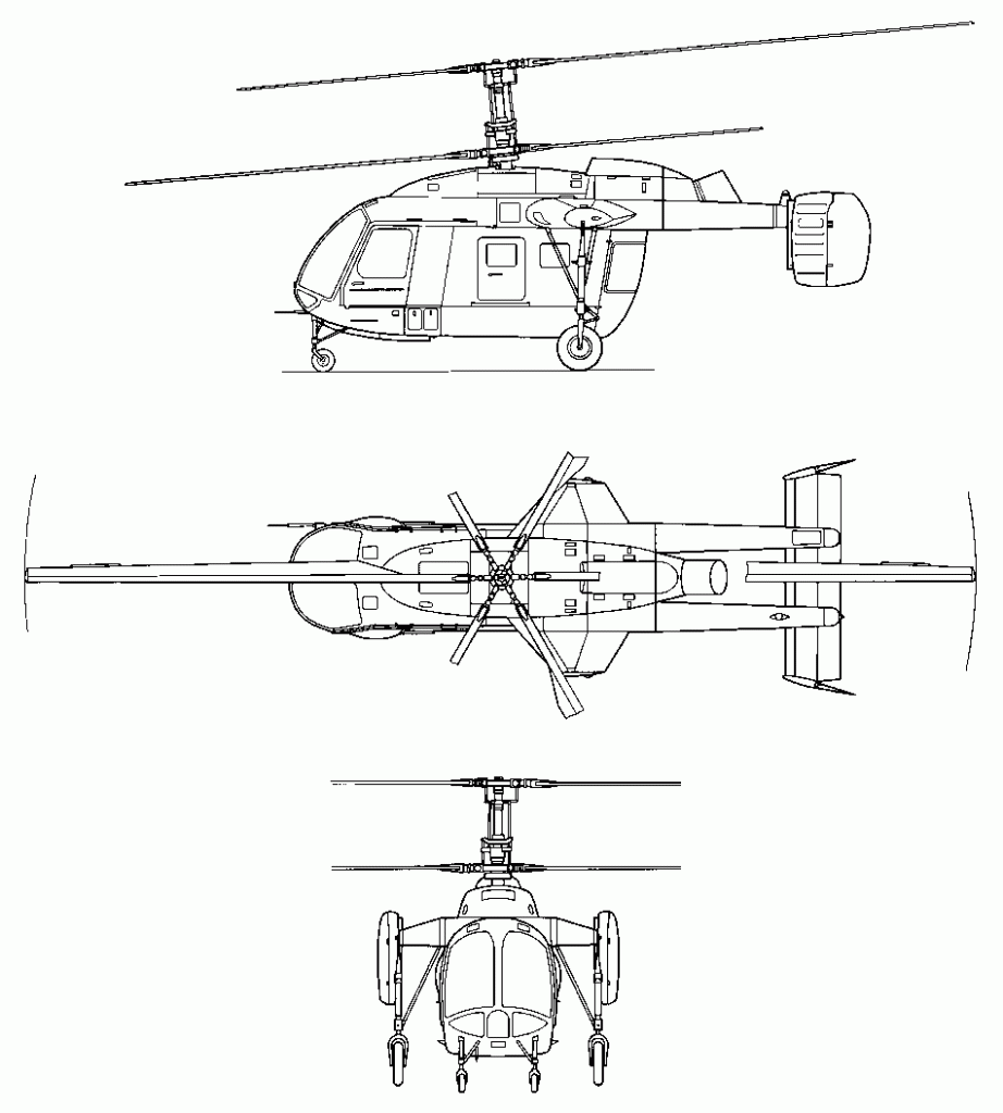 Featuring contrarotating coaxial three-blade rotors, a hinge rotor head with ‘rake’-type blade attachment, the Ka-26 blades of the initial series were to be succeeded by GFRP and CFRP blades with twin-contour spar, load-carrying rear section and electrothermal anti-icing. A rotor brake WAS standard, and non-folding blades.