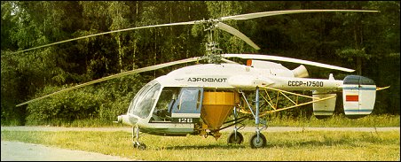 The first of four Soviet-built preproduction Ka-126s first flew on 19 October 1988. A proposed Ka-128, differing only in a 722shp Turbomeca Arriel 1D1 turboshaft power plant and addition of an intermediate gearbox was abandoned.