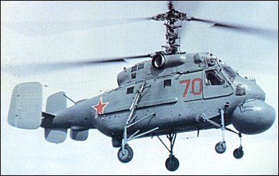 Ship-based anti-submarine helicopter, operated from former Soviet Navy missile frigates, cruisers, helicopter carriers and carrier/cruisers of “Kiev” class; major shortcoming is lack of automatic hover capability, preventing night and adverse weather use of dipping sonar. Replaced progressively by Ka-27PL (“Helix-A”).
