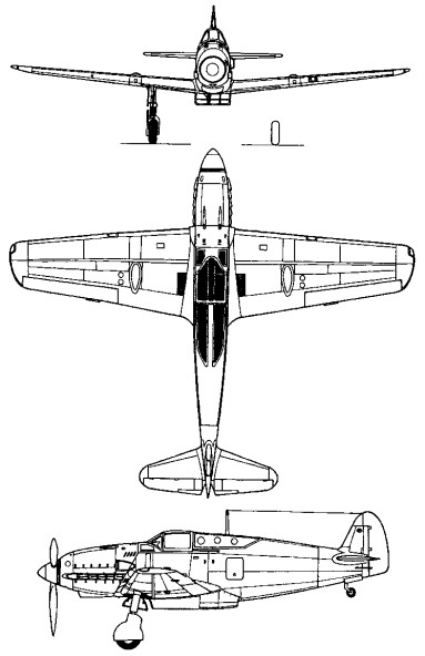 The Ki 60 was developed by a design partnership of Takeo Doi and Sin Owada, the first prototype flying in March 1941. It was a low wing all metal cantilever monoplane with a short fuselage of rather humped appearance. The main wheels retracted inwards to lie entirely within the wing profile, and the tail wheel was also retractable. The wings and horizontal tailplane had straight taper. With the 1100 hp DB 601A engine a top speed of 550 km/h (342 mph) was attained, less than the designers’ estimates. Armament was four 20 mm (0.79 in) cannon, two in the wings and two fuselage mounted.