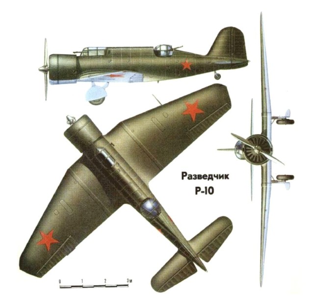 The first prototype of the plane, with a factory designation KhAI-5 (ХАИ-5), flew in June 1936. Despite a lower performance, the aircraft won a contest against another reconnaissance plane design, the Kotcherigin R-9, and was accepted for a production with the military designation R-10 (‘R’ for razvyedchik – reconnaissance). 493 R-10s had been manufactured in Kharkiv and Saratov aviation plants by early 1940. The first series showed some teething problems, and because of these I. Neman was arrested by the NKVD on December 11, 1938 under false accusation of sabotage and espionage.