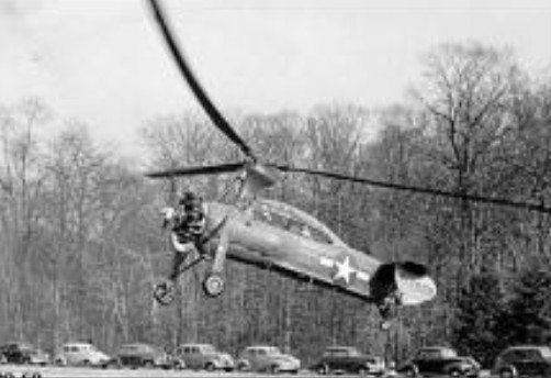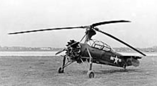 The two-place YO-60 was designed by Richard O. Prewitt and could do jump take-offs. The rotor was spun up to about 280 rpm (rotations per minute) at a no-lift angle using the power of the radial engine. When ready for take-off, the pilot would release a clutch mechanism which changed the blade angle to 8 degrees. This caused the aircraft to ‘jump’ about 10 feet into the air. The engine and propeller then pulled the YO-60 into forward flight as the rotor angle was decreased to a normal flight pitch of 3 degrees. The engine was only used to spin the rotor up to flight speeds on the ground, while in flight the rotor was free spinning.
